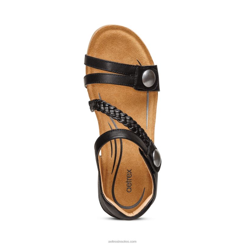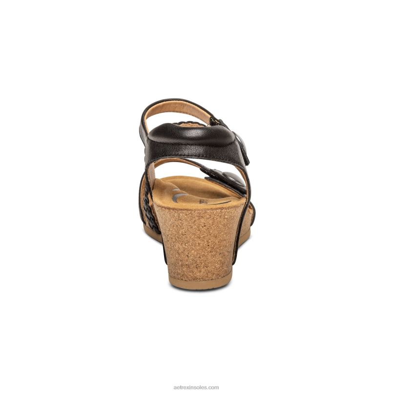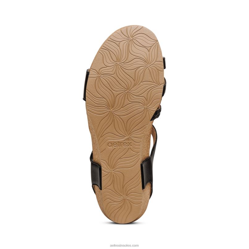アヴリル クォーター ストラップ ウェッジ 女性 Aetrex 黒 0888T240