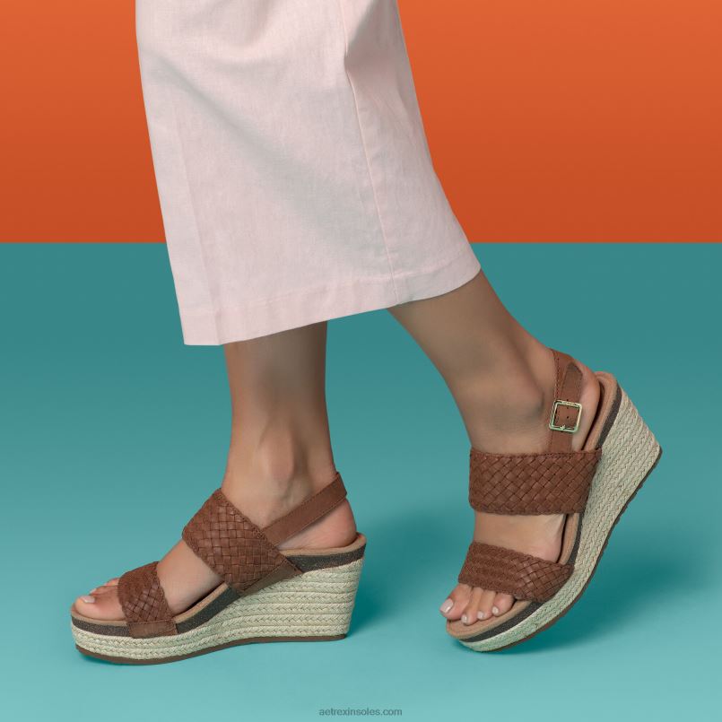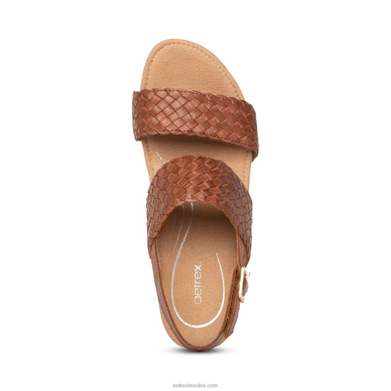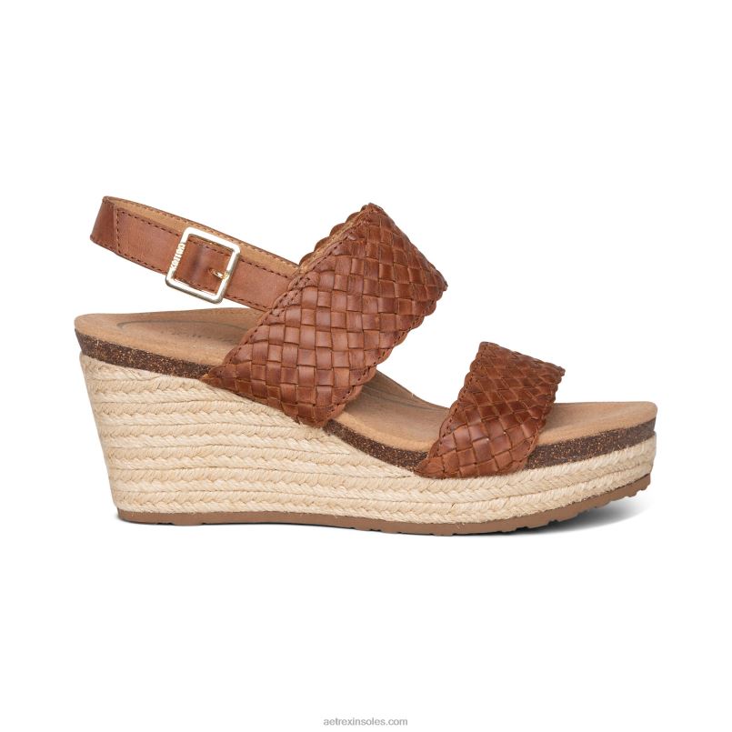 サマーウーブンクォーターストラップウェッジ 女性 Aetrex コニャック 0888T192