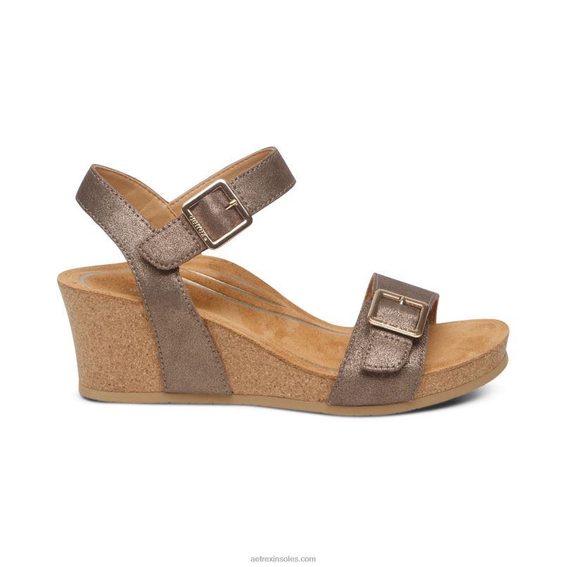 レクサ クォーター ストラップ ウェッジ 女性 Aetrex ブロンズ 0888T95