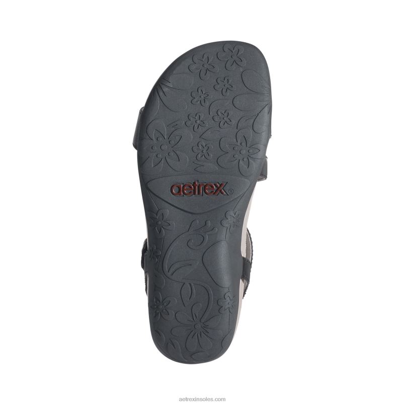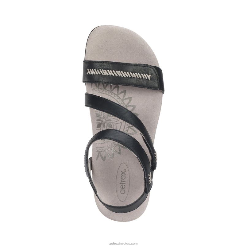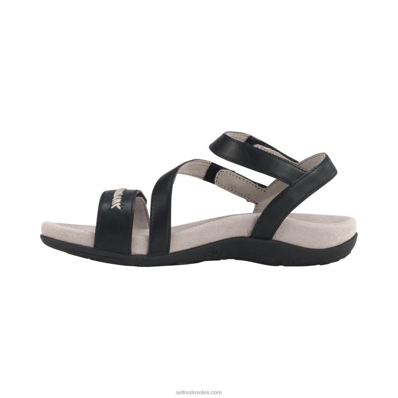 ギャビー 調節可能なクォーターストラップサンダル 女性 Aetrex 黒 0888T10
