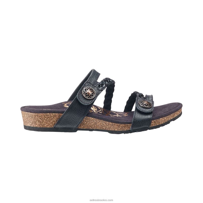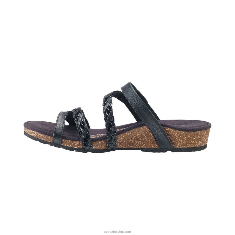 ジェイニー編み込みスライド 女性 Aetrex 黒 0888T19