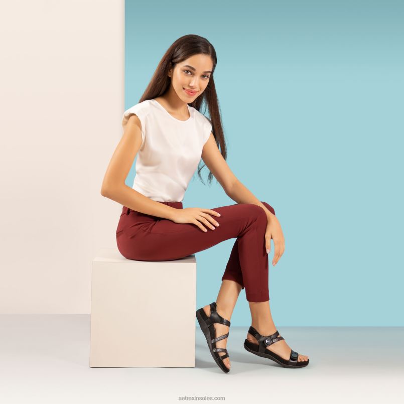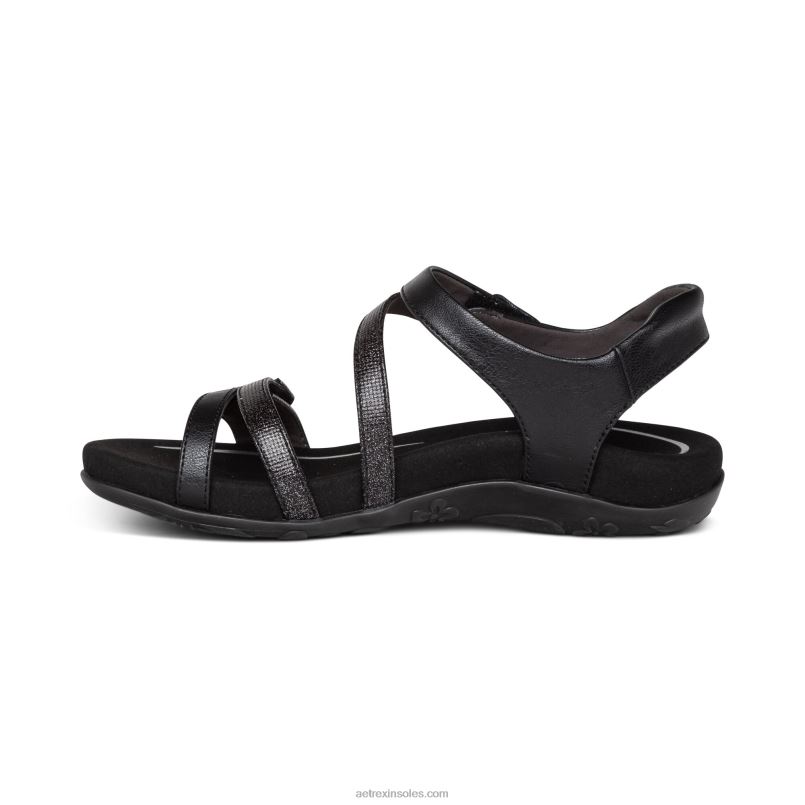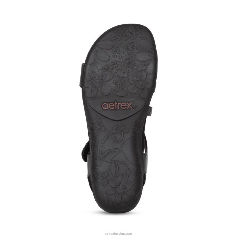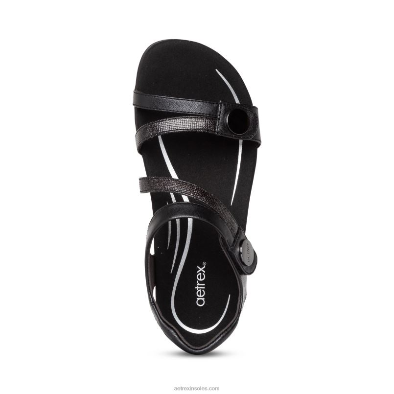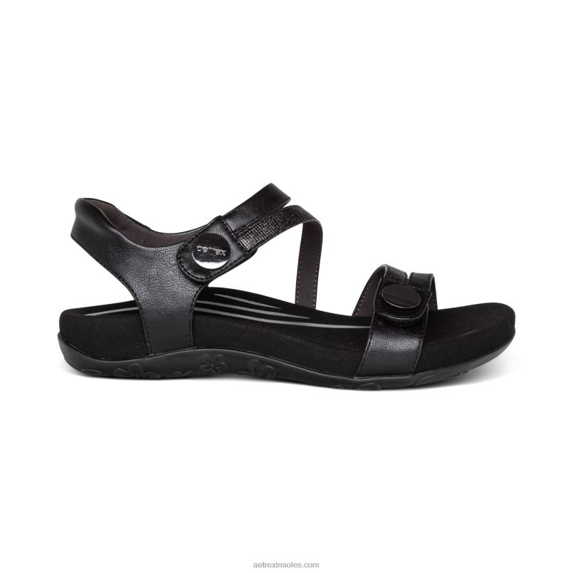 ジェス 調節可能なクォーターストラップサンダル 女性 Aetrex 黒 0888T93