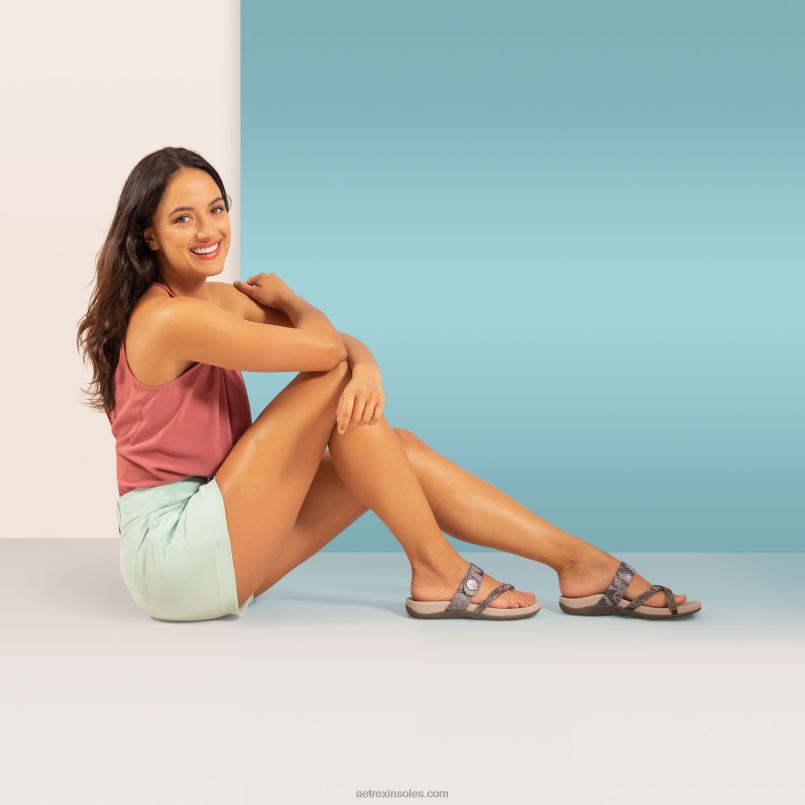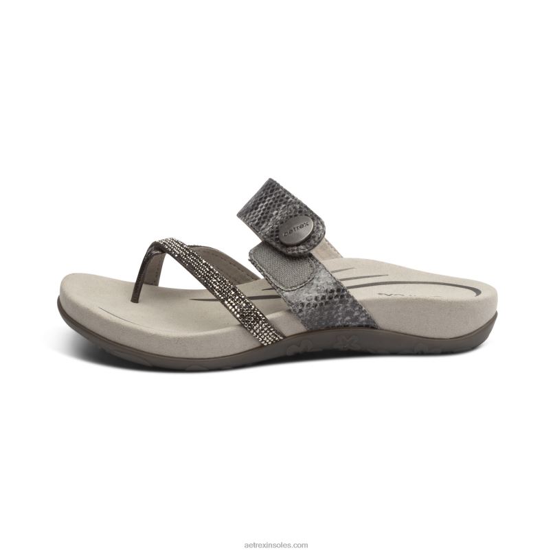 izzy アジャスタブル スライド サンダル 女性 Aetrex ピューターの輝き 0888T50