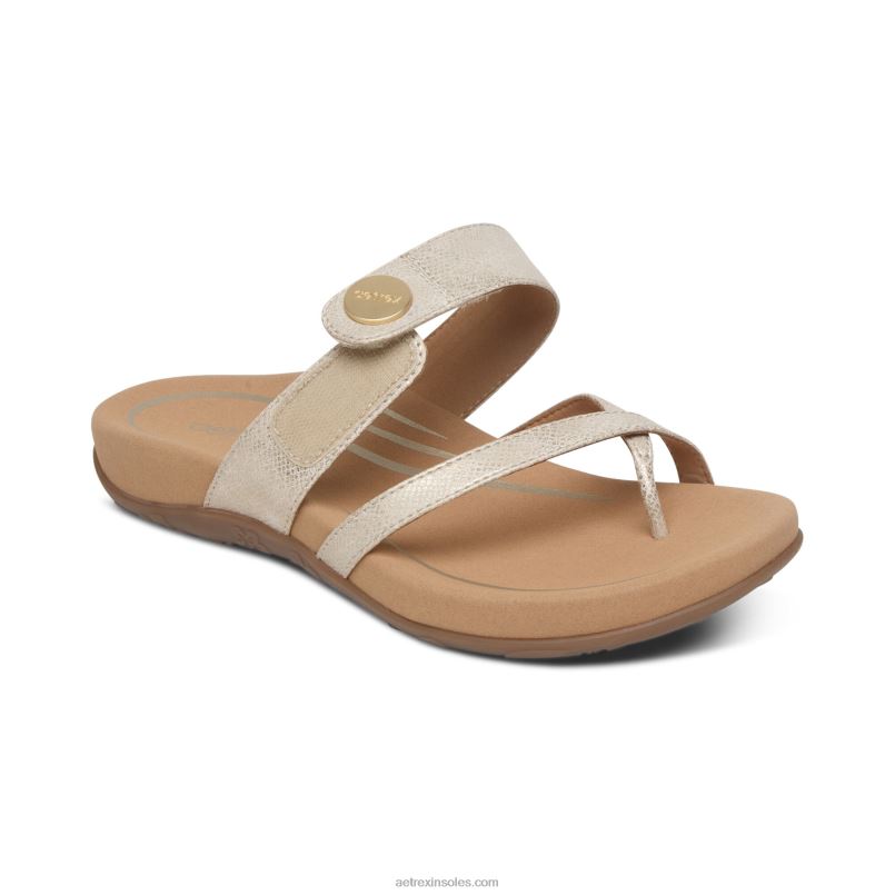 izzy アジャスタブル スライド サンダル 女性 Aetrex ライトゴールド 0888T166