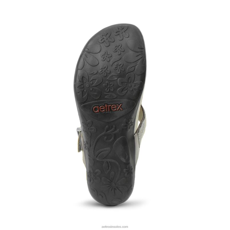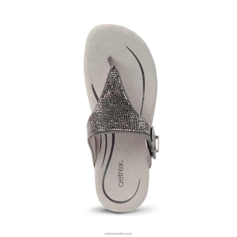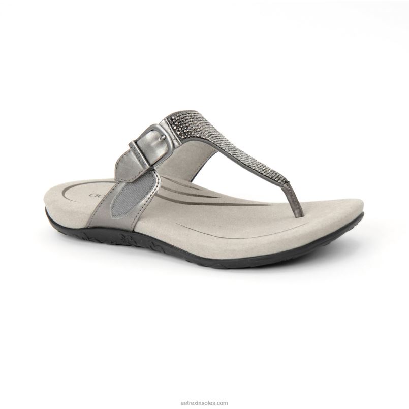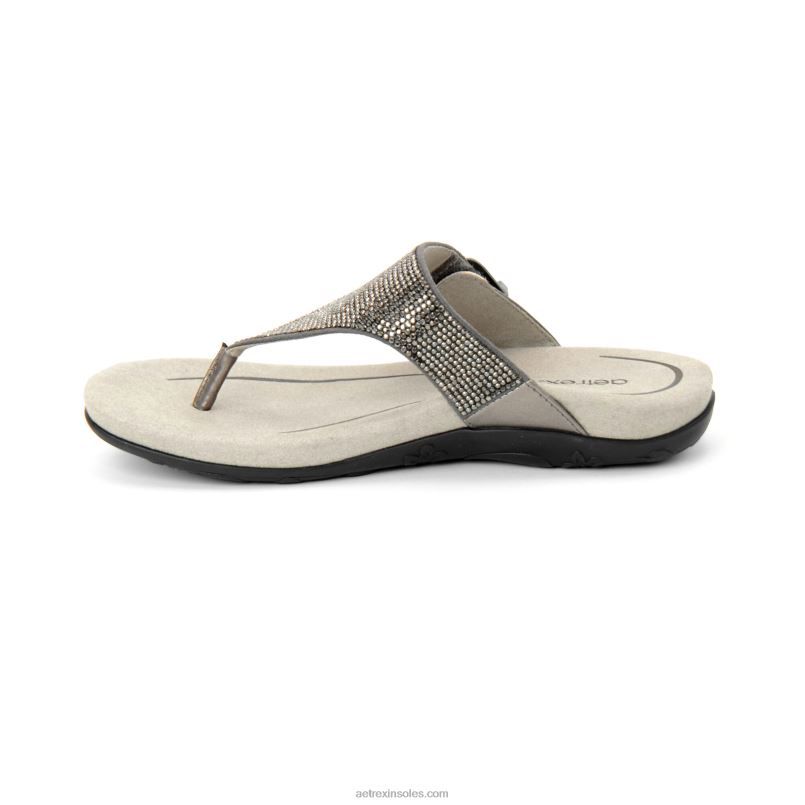 rae 調節可能なトングサンダル 女性 Aetrex ガンメタル 0888T245