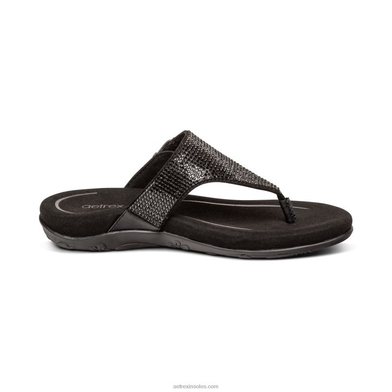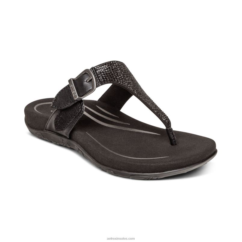 rae 調節可能なトングサンダル 女性 Aetrex 黒 0888T236