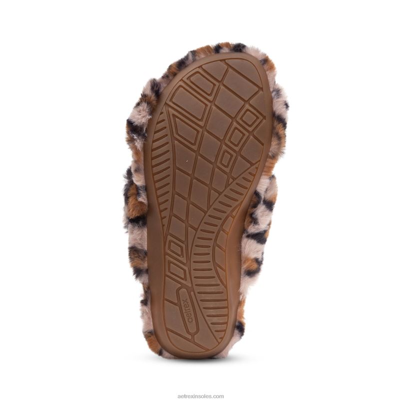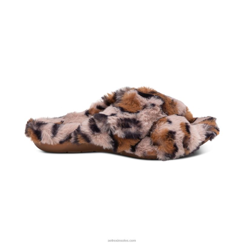 ペネロペ 調節可能なフェイクファースリッパ 女性 Aetrex ヒョウ 0888T212